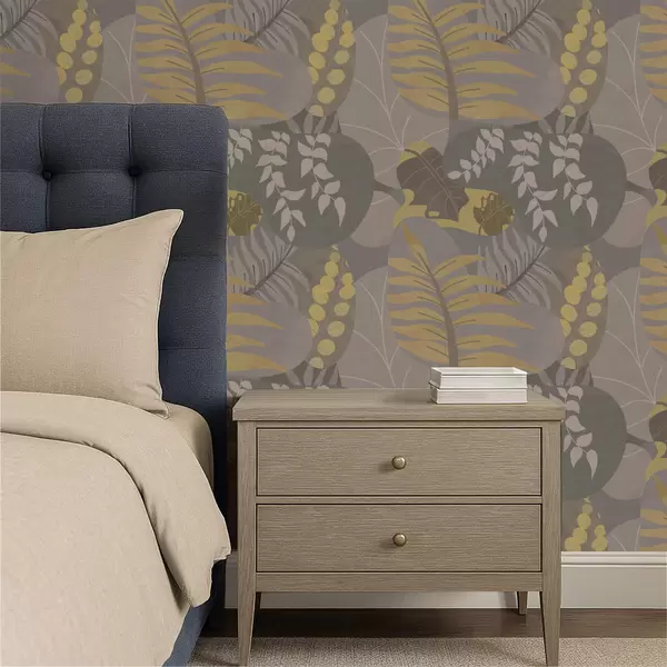 Papel de parede Folhas abstratas em tons de cinza e amarelo Nr. a01112