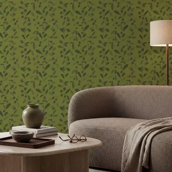 Papel de parede Galhos verdes com folhas e bagas na oliveira Nr. a01113