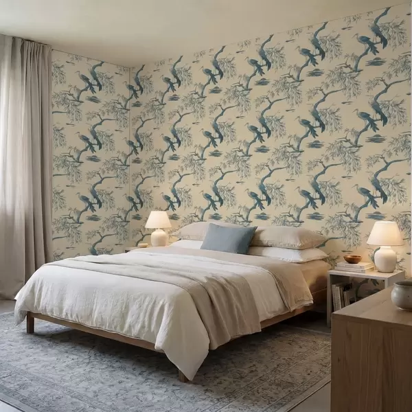 Papel de parede Pássaros num ramo em tons de azul Nr. a01116