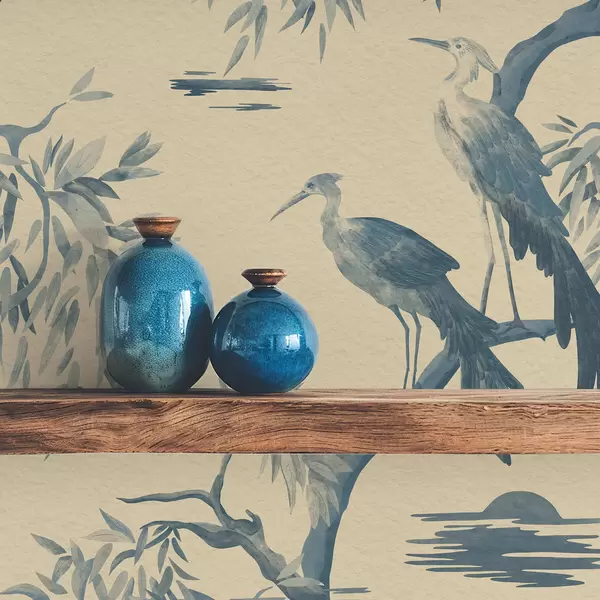 Papel de parede Pássaros num ramo em tons de azul Nr. a01116