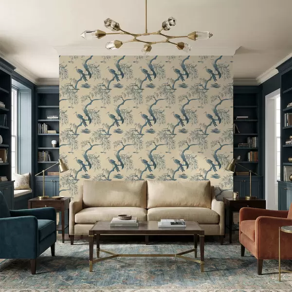 Papel de parede Pássaros num ramo em tons de azul Nr. a01116