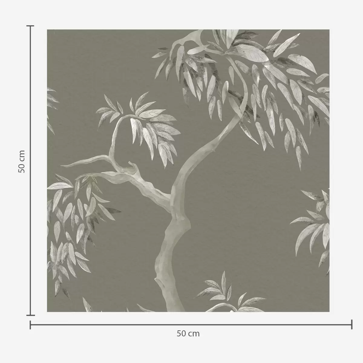 Papel de parede Ramo leve com folhas sobre fundo verde-oliva Nr. a01117v1