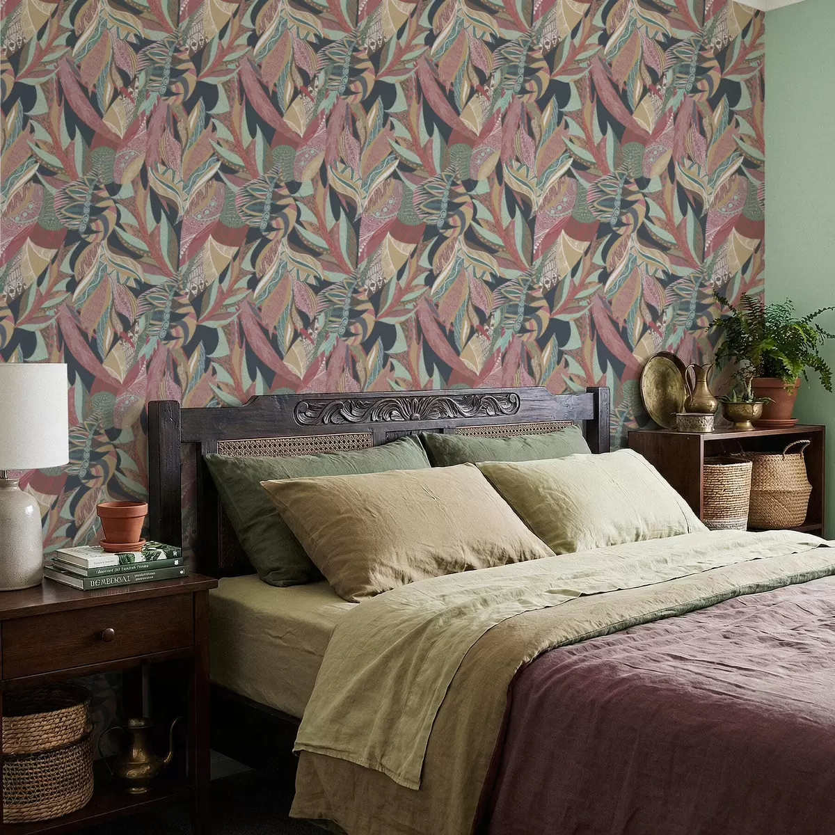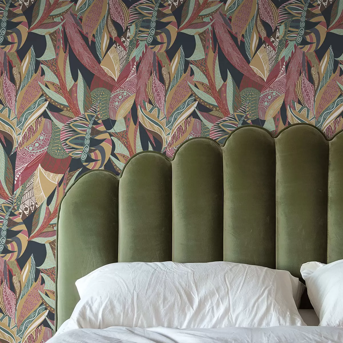 Papel de parede Folhas com padrões coloridos sobre fundo escuro Nr. a01120