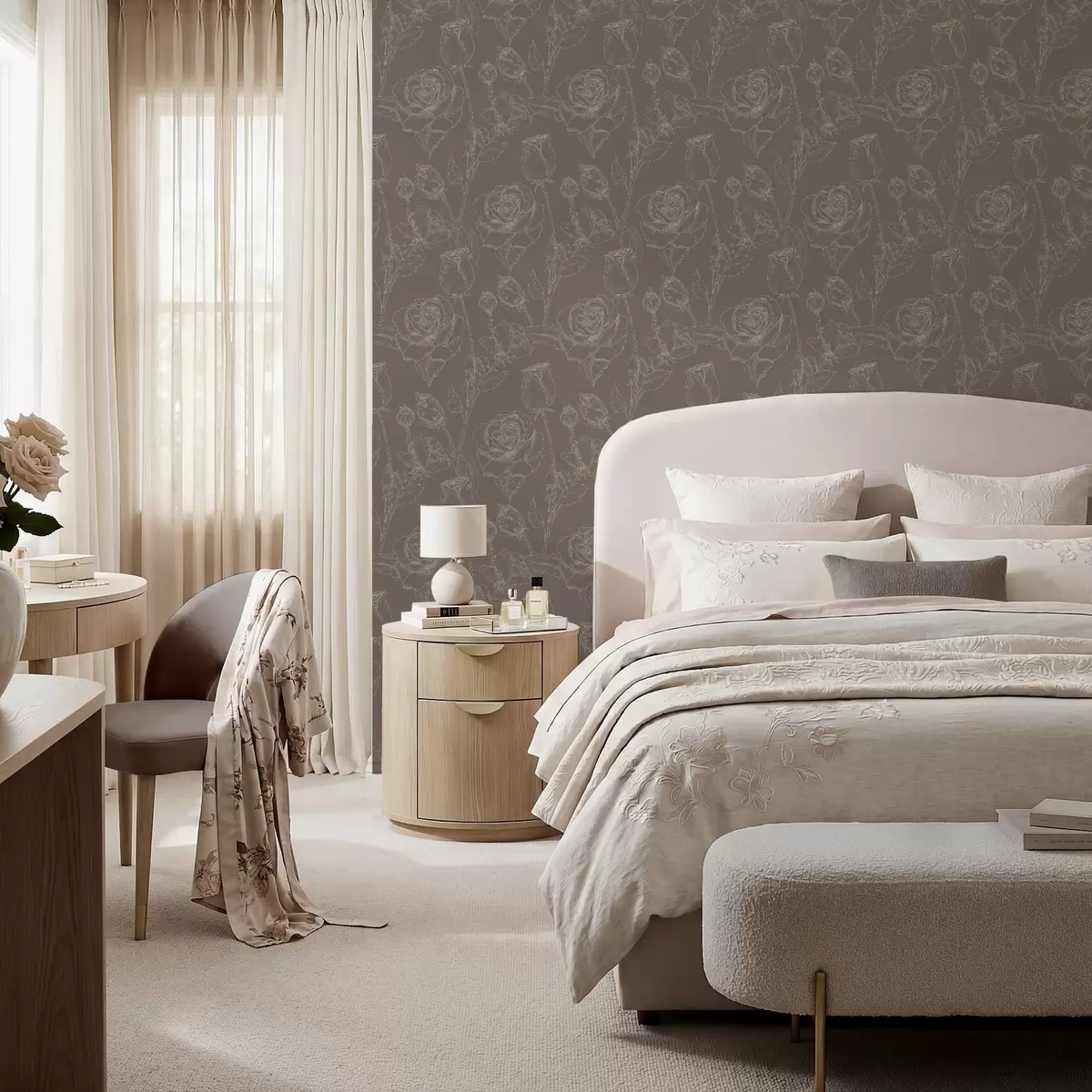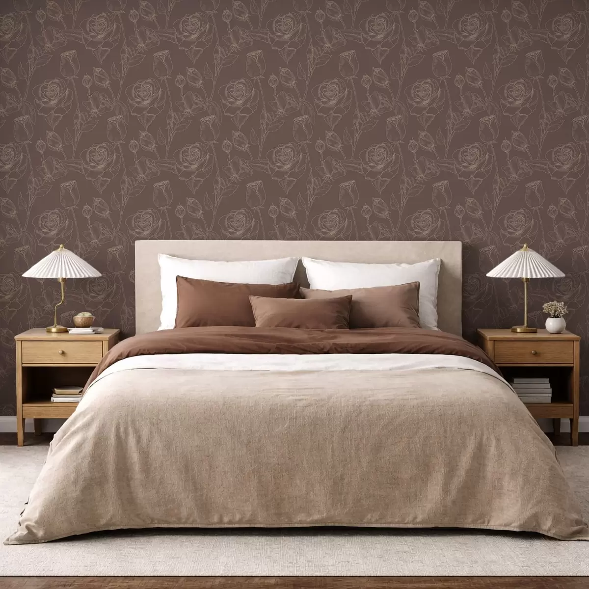 Papel de parede Padrão de rosas escuras sobre fundo castanho Nr. a01124v1