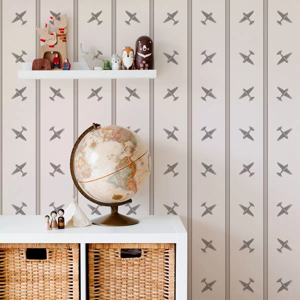 Papel de parede Aviões com padrão às riscas sobre fundo claro Nr. a01170v1