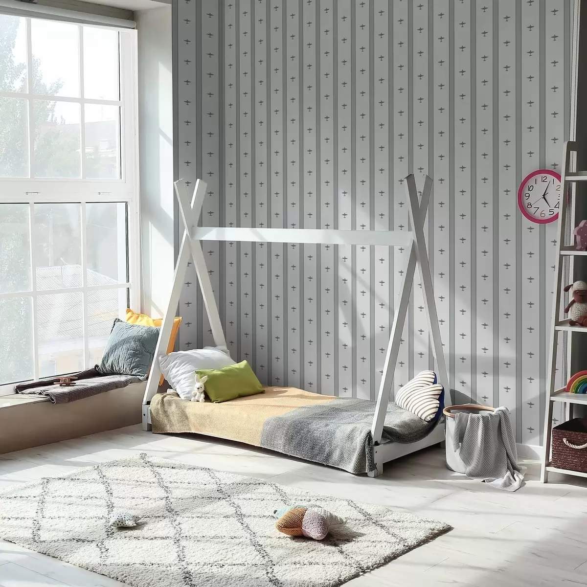 Papel de parede Pequenos aviões com riscas sobre fundo cinzento Nr. a01171v1