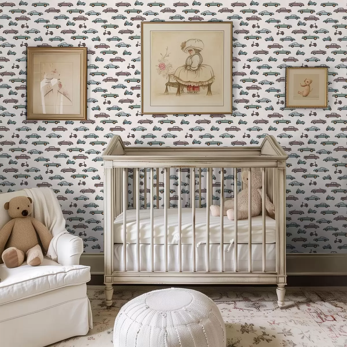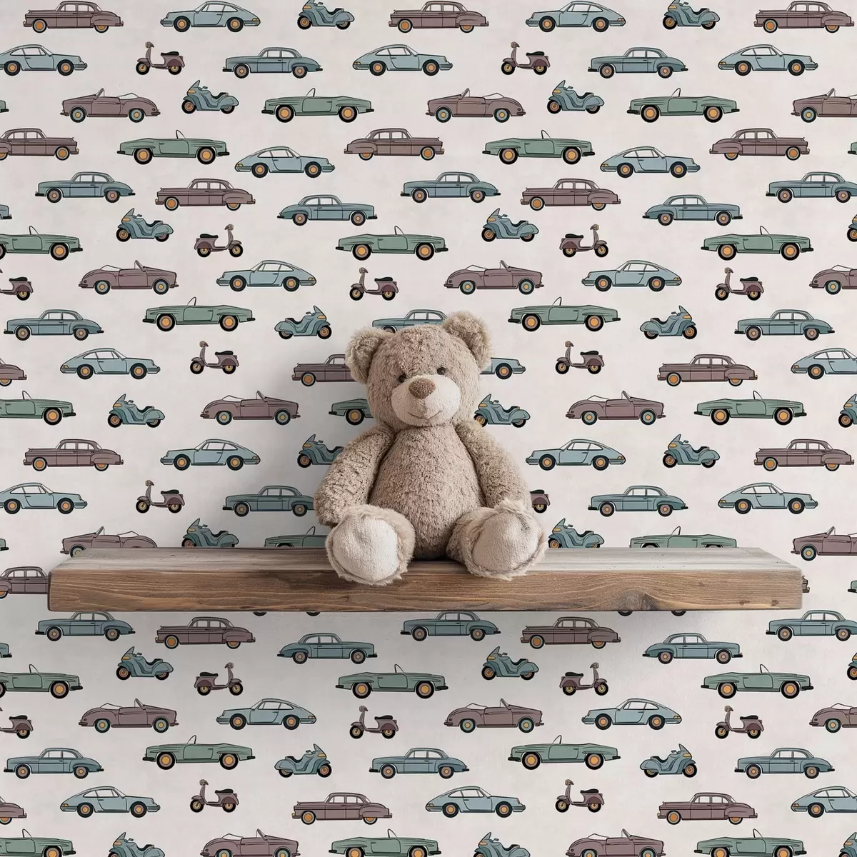 Papel de parede Carros e scooters retro sobre um fundo claro Nr. a01172