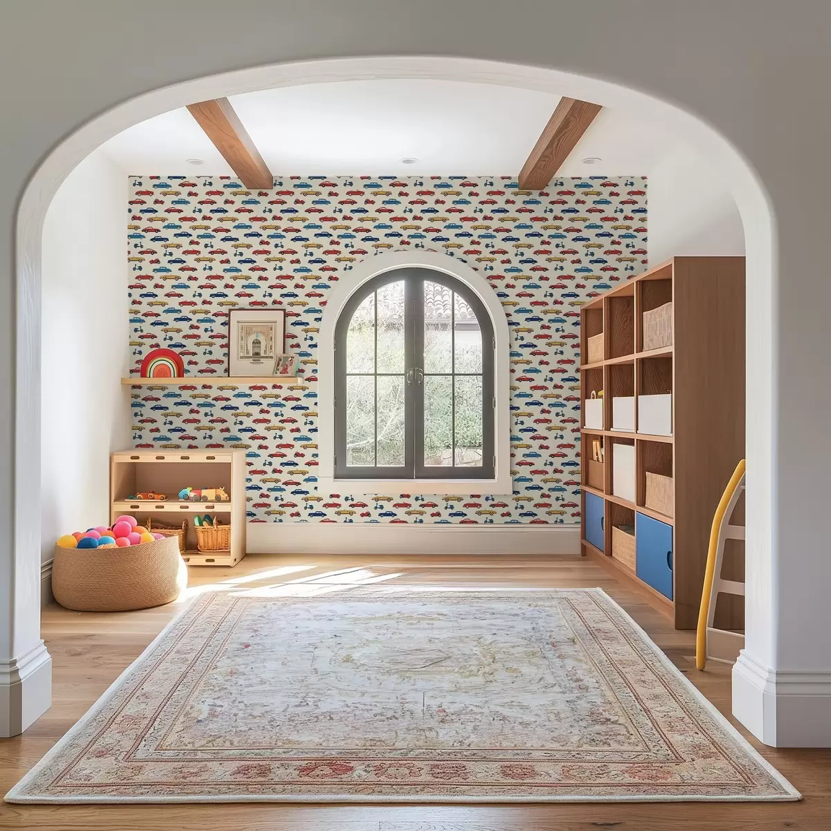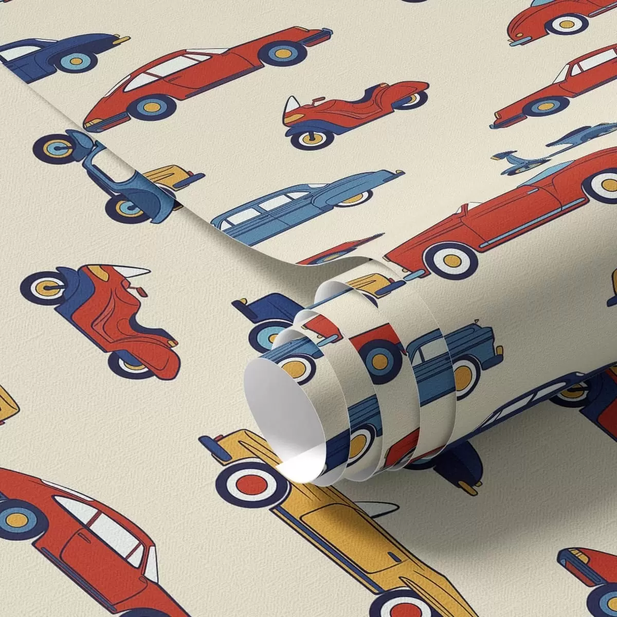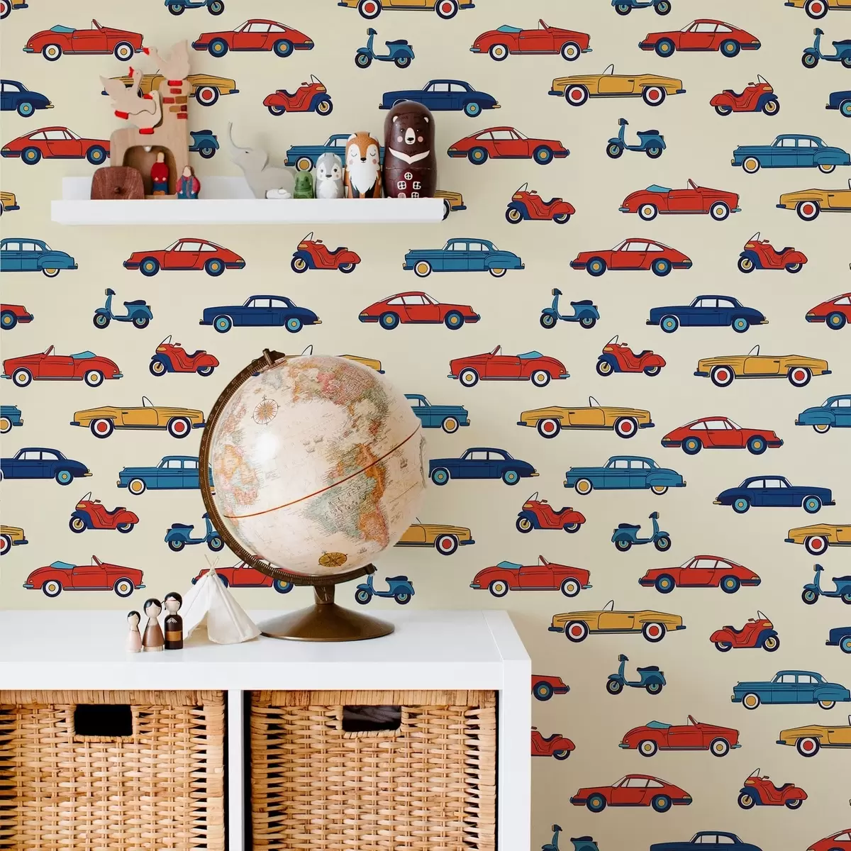Papel de parede Carros e scooters retro coloridos sobre um fundo claro Nr. a01172v1