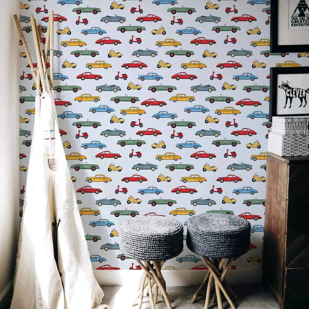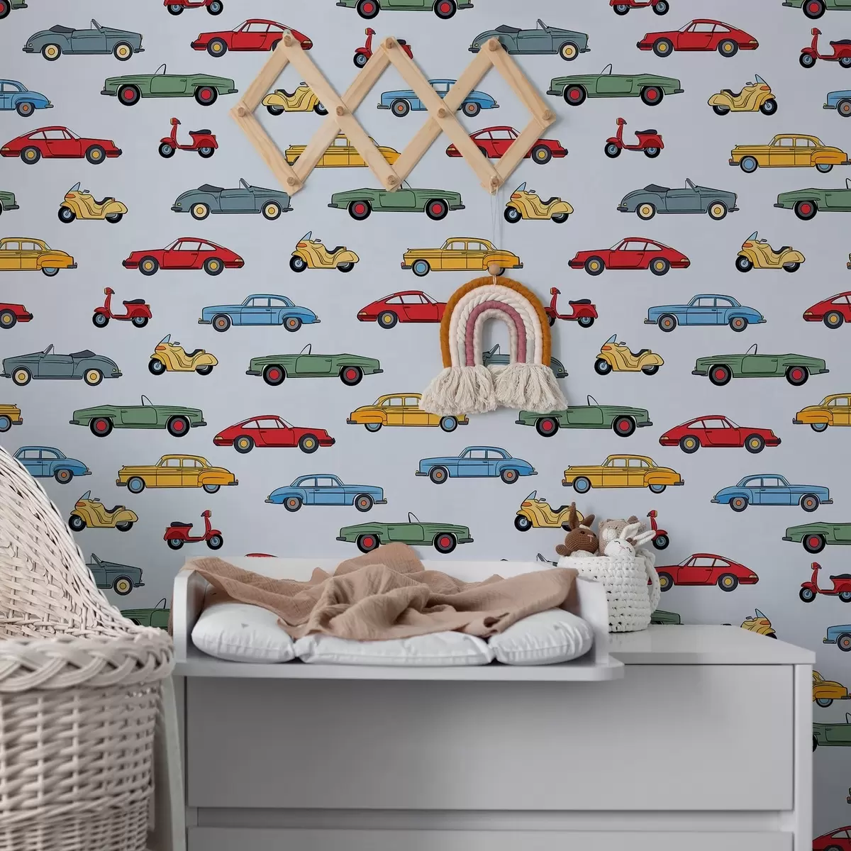 Papel de parede Carros e scooters retro sobre fundo azul Nr. a01172v2