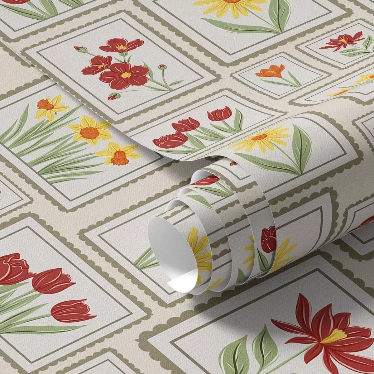 Papel de parede Ilustrações florais emolduradas em tons quentes Nr. a01173