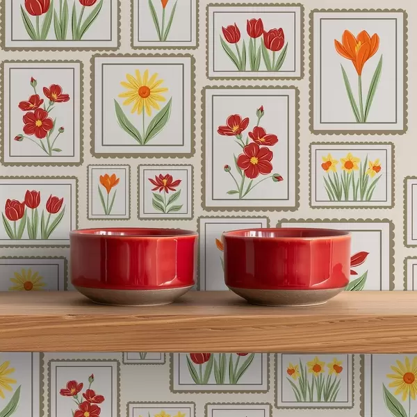 Papel de parede Ilustrações florais emolduradas em tons quentes Nr. a01173