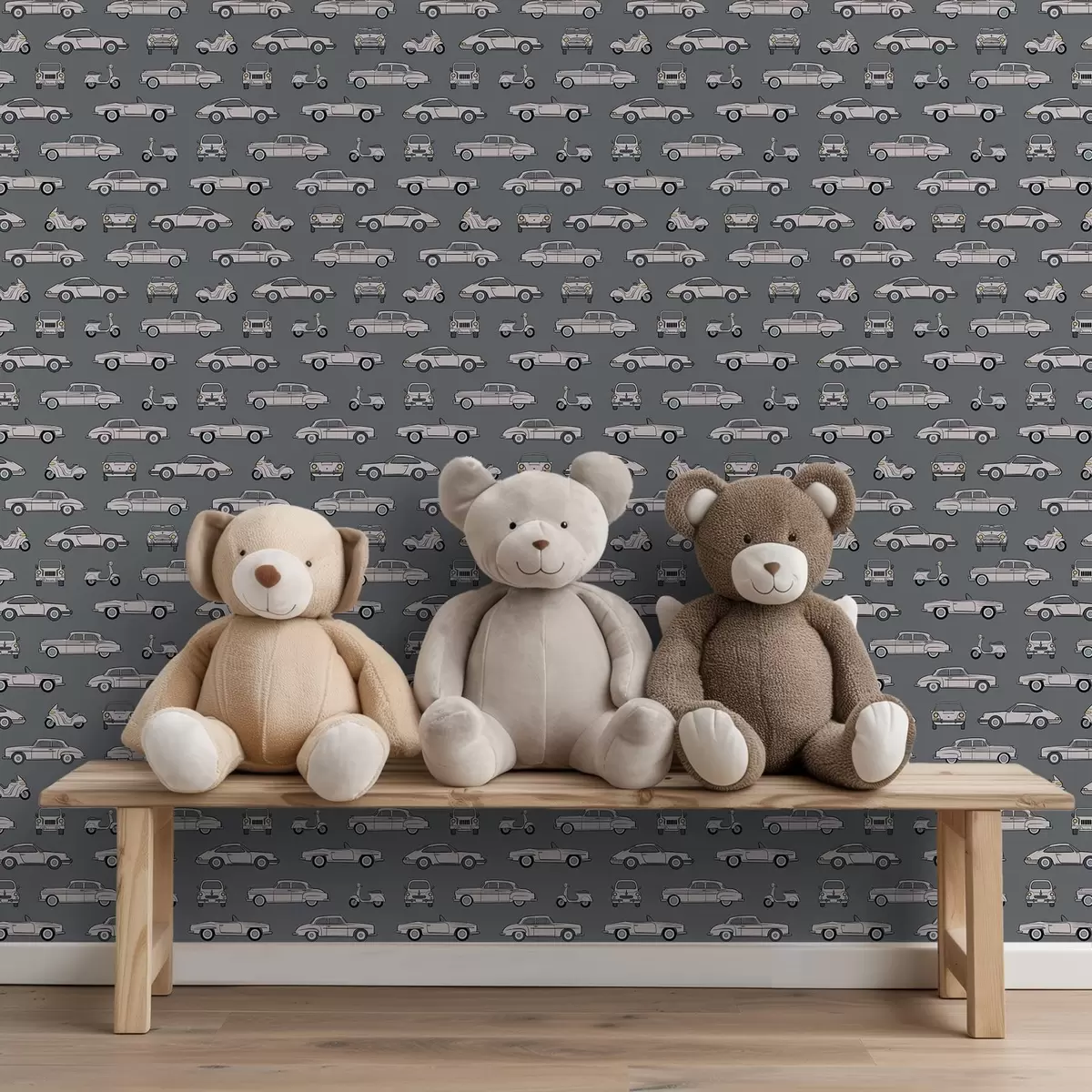 Papel de parede Carros e scooters retro sobre fundo escuro Nr. a01178v3
